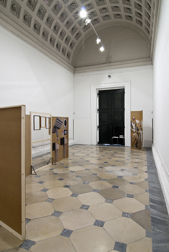 „Landscape in Progress II“ geht zurück auf eine Ausstellung, die Andy Hope 1930 in München in einem niedrigen Kellerraum gezeigt hat: „Londußdorf konkret – Landscape in Progress“. Als eine seiner ersten Rauminstallationen entwarf diese „Landschaft in der Entwicklung“ 1998 das Spektrum, in dem der Künstler nach seinem Umgang mit dem Medium der Ausstellung suchte: eine Aneignung mit leichten Mitteln, schnell und direkt, scharf und konkret, Mittel, die in Form und Inhalt ebenso präzise und unberechenbar sind wie die historischen Manifestationen seiner Vorbilder Malevich und Rotschenko; ihnen war es den zwischen 1915 und 1920 noch einmal gelungen, die Moderne im Moment ihres Aufbruchs erneut herauszufordern. Andy Hope 1930 untersuchte in den letzten 5 Jahren unter den Bedingungen seines Erfolgs in Institutionen und Galerien stets von neuem, wie er seine Mittel frei von ihrer einfachen Anerkennung als Kunst unter Spannung halten kann. Daher wählte er für den Theseus-Tempel seine „Sprache aus dem Keller“: um ihr Potential auf der exponierten Position eines hohen Sakralraums erneut herauszufordern.