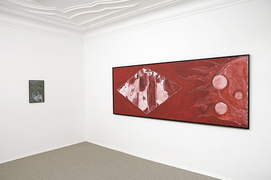 (three pieces of equal size: 325 x 140 cm)325 × 420 2008Valleys of NeptuneGouache on cardboard 50 × 40 2008Po TimeOil on cardboard24.1 × 29 2006The LibrarianGroup of 2 works 2008SpectreOil on canvas40 × 30 2000/2006Sensation SeriesGroup of 8 works (only 3 exhibited) 2000/2006Past and Future DinosaursInk on paper 29.7 × 21 2000/2006DilopolusInk, collage on paper29.7 × 21 2000/2006You Are a Big GirlInk, collage on paper 29.7 × 21 2008Known only to himselfOil on pressed cardboard46 × 36.1 2008UntitledOil, collage on plexiglas36.3 × 28 2006American AbstractionGroup of 5 works 2006American AbstractionCollage, ink, crayon on paper 29.7 × 21 2006SHEInk on paper and collage29.7 × 21 2006American AbstractionCollage, ink, crayon on paper 29.7 × 21 2006UntitledInk, crayon on paper 29.7 × 21 2006UntitledCollage26.2 × 15.6 1997/2006The last MartianGroup of 4 works 1997/2006O.T.Pencil, felt-tip pen on paper