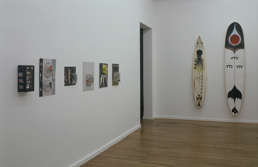 1999CathedralMixed Media175 × 47 × 100Tags: Data Incomplete 2003SunrainVarious materials102 × 66 × 8 2003YouOil on wood54 × 53Tags: Portrait 2003Forever PeopleOil on board73 × 53Series: Forever People 2003They Came Back from MoonOil on wood46.5 × 36Tags: America 2005Exotic Evolution X – The Long TomorrowAcrylic, lacquer on canvas392 × 984Series: Exotic Evolution XThe Long Tomorrow 2002Saturn QuadratOil on board60 × 50Series: SaturnTags: AbstractionPlanetary systemSquare 2002Saturn Quadrat Haus 6Oil on cotton220 × 300Series: SaturnTags: AbstractionSquare 2002Sagittarius RisingOil on fiberglass230 × 45 × 20Series: Surfboard 2003NighstalkerMixed Media (two parts, with stick)Tags: Data Incomplete 2003Haunt of SubzeroOil on BoardTags: Image Resolution 2003Tiki ProjectOil on board50 × 40Series: Weird Tiki - 2003/2004Formation of ElementsMixed Media50 × 40