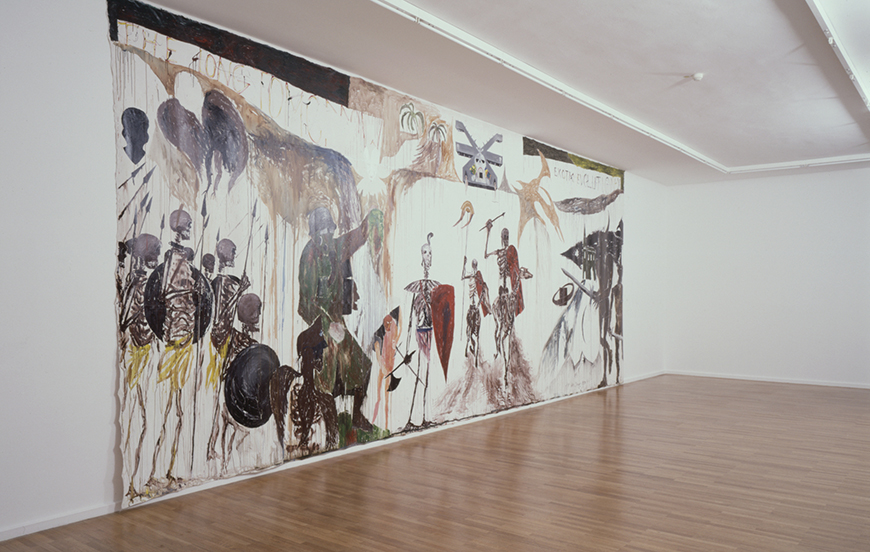 2004Hall of Last HourGouache on board40 × 35 2004Runaway RoomOil on board25 × 38Series: Runaway RoomTags: Data IncompleteMachine 2001Fantasy SuicidePaperback, cutouts18 × 24 2003Massai Mädchen (WP)Oil on wood60 × 39Series: WPTags: Totalitarianism/fascist aesthetics 2002Peiner BlockSeries of drawings (45 drawings)Series: WPTags: Totalitarianism/fascist aesthetics 2002Into the Unknown AmericaOil on wood54 × 48 2004NexusAcrylic, lacquer on wood280 × 450 2003Einzug in KandaharLacquer on wood250 × 420 2002Eggender BauerWatercolor on paper66 × 50Series: WP 2003American MonstersOil on canvas70 × 55Tags: Layout PaintingMonster - 2003They Will SurviveOil on wood46.4 × 36Tags: Data Incomplete