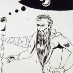 Andreas Hofers (*1963 in München) Arbeiten zeigen eine vielschichtige Bild- und Sprachwelt, die von mitunter surrealen Figuren, Fabelwesen, mythischen Zeichen und Fantasyfiguren bevölkert wird.