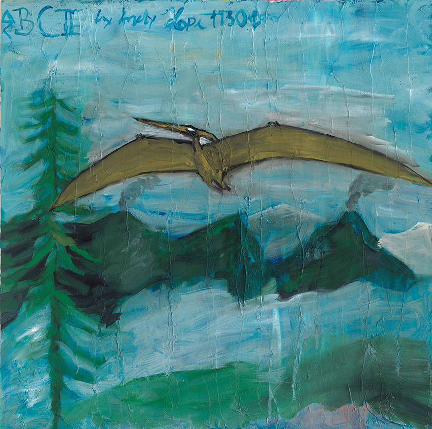 225 × 301 cm Acrylic, laquer on canvasPaintingTags: DinosaurAndreas Hofer. Andy Hope 1930Two Bad - 2004Never World