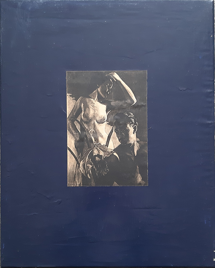 50 × 40 cm Lacquer and photocopy on fabricPaintingTags: Data Incomplete, Picabia - 1994Blue (After Picabia 1)