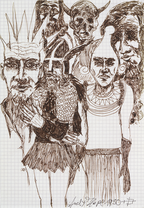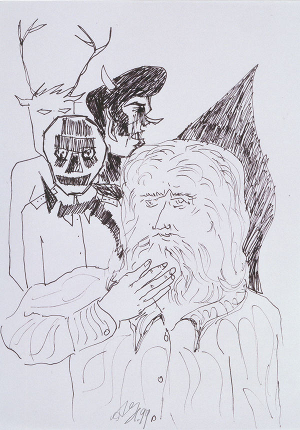 29.7 × 21 cm Marker pen on paper DrawingThis Island EarthFruits de la Passion - 1999Untitled (Old bearded man and three masked people)