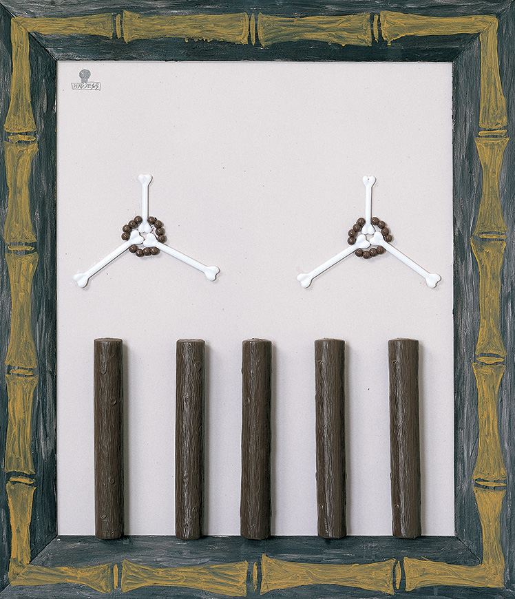 65 × 55 cm Mixed media on boardAssemblageWelt ohne EndeEuro-Centric, Part 1 - 2004Tell I’m on vacation