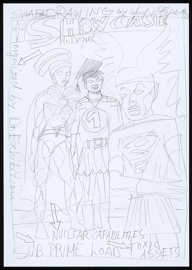 Framed Gouache, felt pen on cardboardPaintingAndreas Hofer. Andy Hope 1930Goetz meets FalckenbergTwo Bad - 2008Showing Me Where I Came From, Detective, Look Out East
