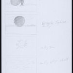 Pencil and colored pencil on storyboard paper DrawingSeries: Fran AthensTags: Storyboard - Desert Scene with Black Sphere