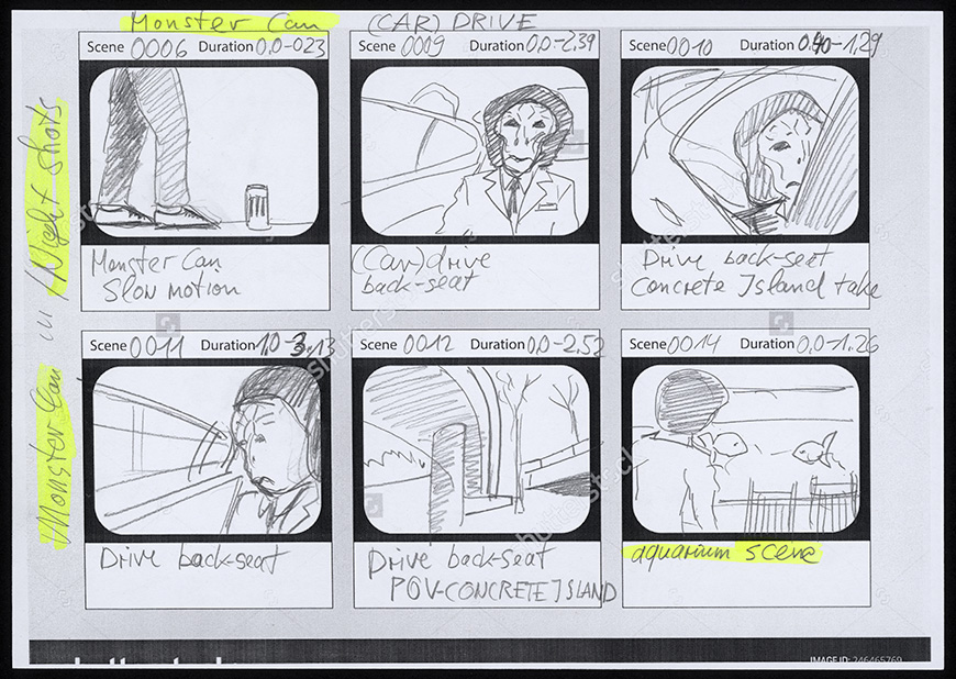 Pencil and colored pencil on storyboard paper DrawingSeries: Fran AthensTags: Storyboard - Night Shots. Scene 0006 (Monster Cam)
