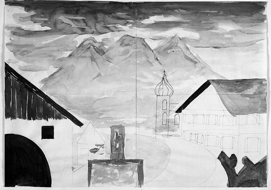 42 × 59 cm Watercolor, feltpen on paperPaintingSeries: LondußdorfTags: Data IncompleteDown the Hollywood Line - 1995Londußdorf