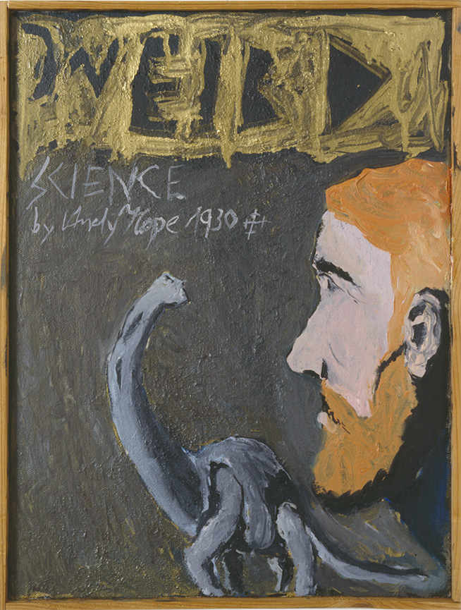 Framed Oil on boardPaintingSeries: Weird ScienceOnly Gods Could Survive