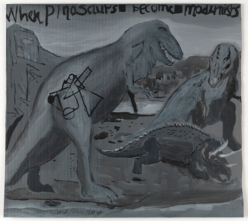 49.8 × 55.8 cm Acrylic on boardPaintingSeries: When Dinosaurs Become ModernistsTags: DinosaurWhen Dinosaurs Become ModernistsHOFEA53975 - 2001When Dinosaurs Become Modernists