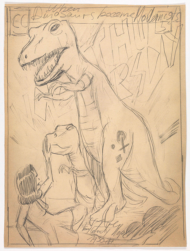 Pencil on invitation cardDrawingSeries: When Dinosaurs Become ModernistsTags: Dinosaur - 2010When Dinosaurs Become Modernists