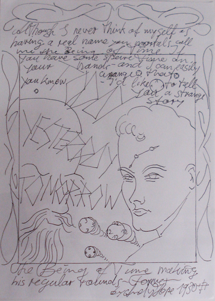 Framed Ink on paperDrawingAndreas Hofer. Andy Hope 1930 - The Being of Time Making His Regular Rounds – Forever