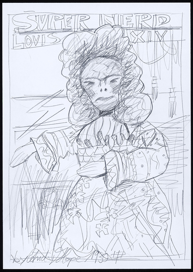 Ballpoint pen, highlighter and marker on paper DrawingSeries: Fran Athens - Super Nerd Louis XIV