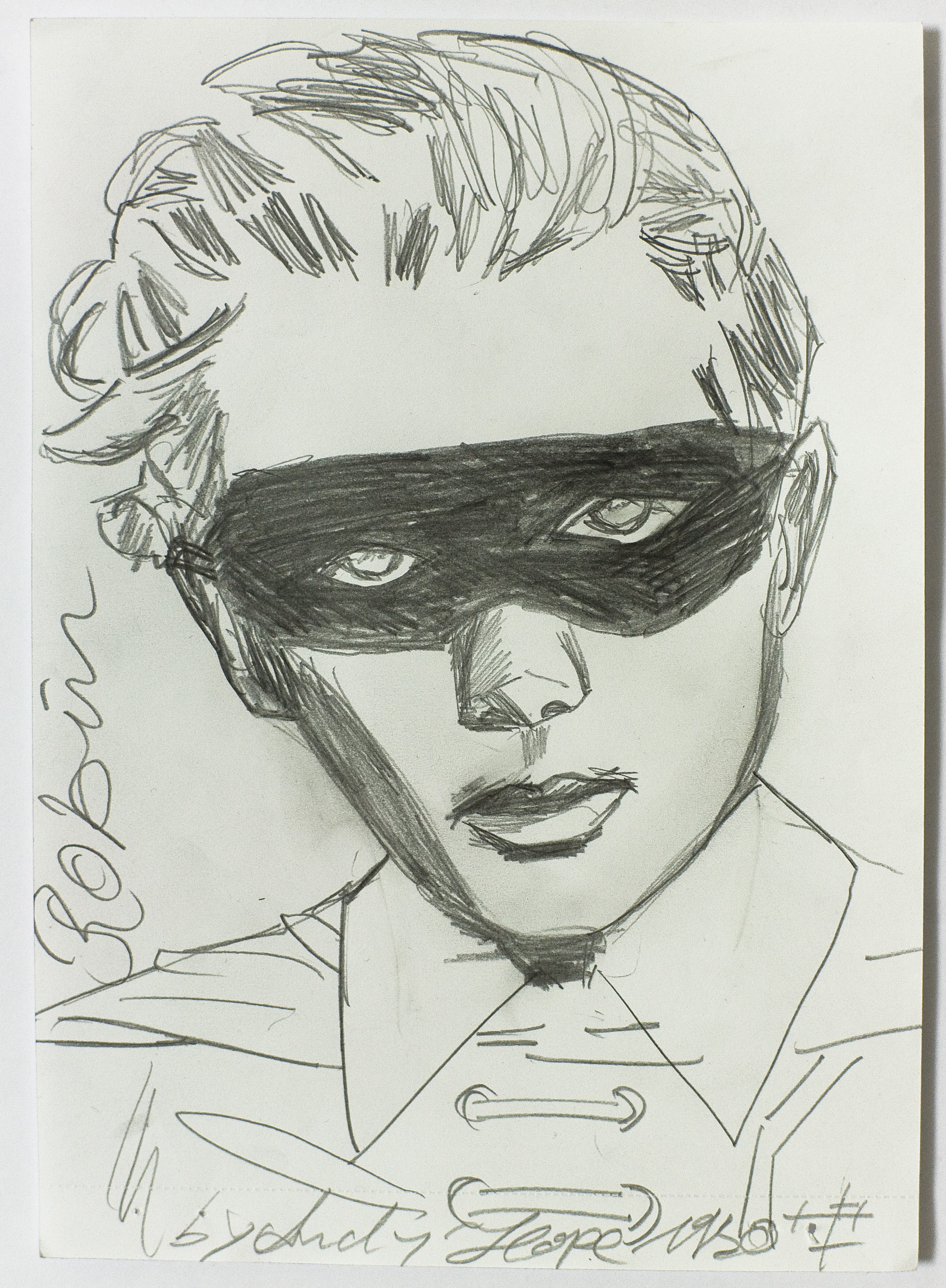 200 × 150 cm Acrylic on canvasPaintingSeries: Robin DostoyevskyTags: Portrait, SuperheroRobin Dostoyevsky by Andy Hope 1930 - 2010Robin Dostoyevsky 1