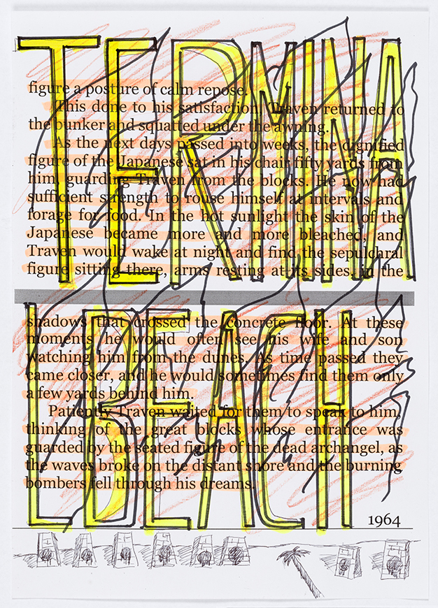 Ballpen, fluorescent marker on copied book pageDrawingTags: Data Incomplete - 2021Terminal Beach II