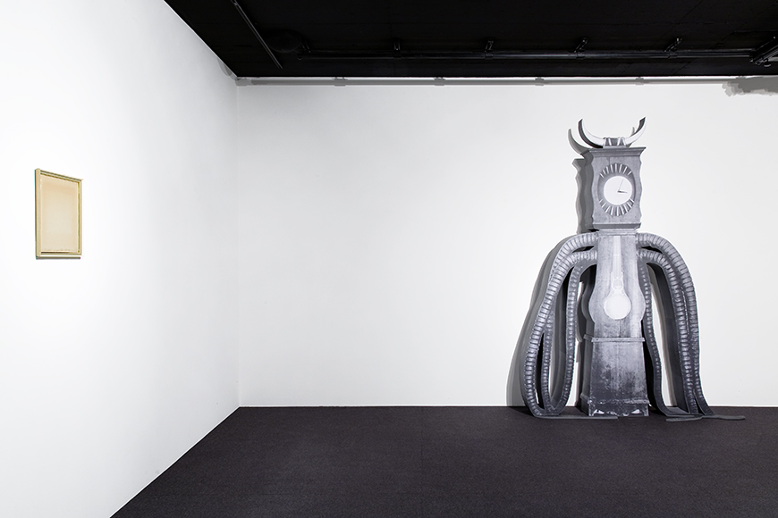 253 × 179 × 46 cm B/w copies, corrugated paperboard, gray paperboard and clockworkObjectSeries: SummoningTags: Clock, Data Incomplete, Sci-FiGotham BooksTapetenwechsel. Künstlertapeten aus der Sammlung GoetzAndreas Hofer. Andy Hope 1930 - 2009Look Out East Coast