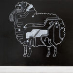 110 × 290 cm Lacquer, acrylic on canvasPaintingSeries: A Square's DreamTags: Machine, Sheep - 2021A Square’s Dream I