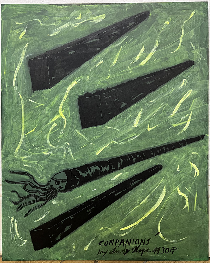 50 × 40 cm Acrylic and fluorescent color on boardPaintingTags: Abstraction, Cameroceras, Data Incomplete, Time Tube - 2020Riddler