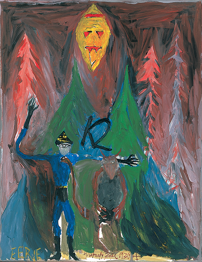50.5 × 39 cm Oil on paperboardPaintingTags: Data IncompleteAndreas Hofer. Andy Hope 1930La nouvelle peinture allemande - 2004Hinter den Hügeln