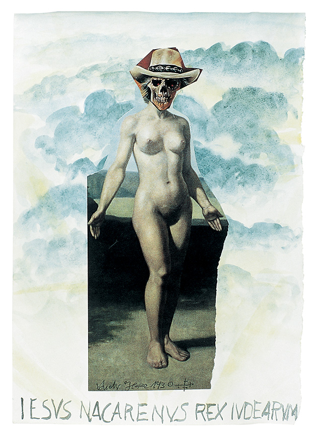 29.7 × 21 cm Watercolour on photocopyCollage, DrawingLondußdorf (no public exhibition) - 1997Jesus Nacaremus Rex