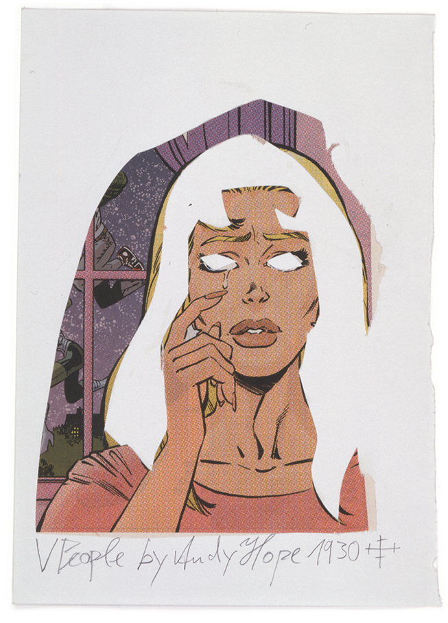 Work Collage Folded Space Details Title Folded Space Year Technical Data Collage, felt pen on paper Work Number Location Sammlung Goetz Series Photo Credit Georg Hofer Hi-Res Repro/Hi-Res Ekta/Dia Tags Dimensions 20.5 × 16.4 cm Related Presentations Andreas Hofer. Andy Hope 19302009, Munich, Germany Two Bad2005, Innsbruck, Austria Publications Andreas Hofer. Andy Hope 19302009 Works 1997/2004Block Two Bad Mixed media on paper, 20 partsDrawingAndreas Hofer. Andy Hope 1930Two BadCreation of a Dinosaur22.5 × 17.9 × 13 cm Collage, felt pen on paperCollageAndreas Hofer. Andy Hope 1930Two Badforever blind ask your true voice30 × 20.5 cm Felt pen on paperDrawingAndreas Hofer. Andy Hope 1930Two BadFlying Serpent Collage, felt pen on paperCollageAndreas Hofer. Andy Hope 1930Two BadUranella29.5 × 20.5 cm Felt pen pn paperboardDrawingAndreas Hofer. Andy Hope 1930Two BadValkyries of the Death29.5 × 20.5 cm Collage, felt pen on paperCollageAndreas Hofer. Andy Hope 1930Two BadKENYA29.5 × 18.4 cm Felt pen on paperDrawingAndreas Hofer. Andy Hope 1930Two BadMR. MXYZPTLK29.5 × 19.8 cm Felt pen on paperDrawingSeries: Mr. MxyzptlkAndreas Hofer. Andy Hope 1930Two BadA WOMAN21 × 14.5 cm Collage, felt pen on paperCollageAndreas Hofer. Andy Hope 1930Two BadA PLANET17 × 20.5 cm Felt pen on paperDrawingAndreas Hofer. Andy Hope 1930Two BadErotische Offenbarungen in der 3. Dimension29 × 21 cm Collage, newspaper, ink on paperCollageAndreas Hofer. Andy Hope 1930Two BadSkysearch23 × 12.8 cm Collage, newspaper on paperboardCollageAndreas Hofer. Andy Hope 1930Two BadDAWN30 × 21 cm Collage, newspaper on paperCollageAndreas Hofer. Andy Hope 1930Two Bad2004V-People21 × 15 cm Collage on paper CollageThis Island EarthOhne Titel (Mann mit Schwert und Spinne)30 × 15 cm Collage, pencil, colored pen on paperCollageAndreas Hofer. Andy Hope 1930Two BadOhne Titel (man in front of red forest)29 × 20.5 cm Collage, feltpen, Ballen, silver point, lipstick on paperCollageAndreas Hofer. Andy Hope 1930Two BadOhne Titel (friends from beyond)29.6 × 21 cm Collage, Ballen, ink on paperCollageAndreas Hofer. Andy Hope 1930Two Bad1995/2005V Group of two works This Island EarthX30 × 19.5 cm Feltpen on paperboardDrawingAndreas Hofer. Andy Hope 1930Two BadThe Demon of the Wind18 × 11 cm Ink on paperDrawingTags: Data IncompleteAndreas Hofer. Andy Hope 1930Two Bad Files No Files External Links No Links Leave a Reply Cancel replyYour email address will not be published. Required fields are marked *Comment * Name * Email * Website