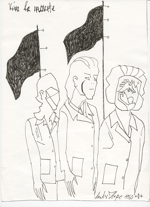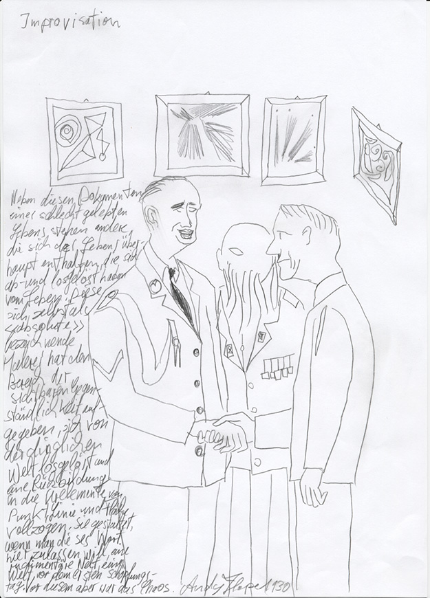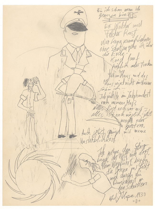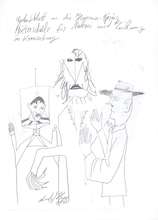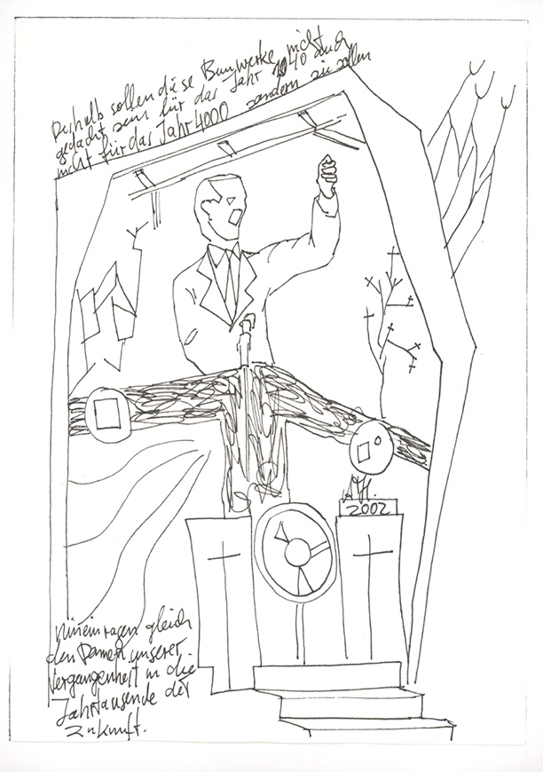 Work Drawing Zeit ohne Geschichte Details Title Zeit ohne Geschichte Year 2002 Technical Data Pencil on paper Work Number Location Series WP Photo Credit Roman März Hi-Res Yes Repro/Hi-Res Ekta/Dia Tags Totalitarianism/fascist aesthetics Dimensions 25 × 17.5 cm Related Presentations Welt ohne Ende2005, Munich, Germany The Long Tomorrow2007, Herford, Germany Solo Presentation, Maschenmode (Galerie Guido W. Baudach)2001, Cologne, Germany Painting on the Roof2003, Mönchengladbach, Germany Publications Andreas Hofer. Peiner Block2005 Works 2002Peiner Block Series of drawings (45 drawings)DrawingSeries: WPTags: Totalitarianism/fascist aestheticsWelt ohne EndeThe Long TomorrowSolo Presentation, Maschenmode (Galerie Guido W. Baudach)Painting on the Roof2002Erneuerung der Zeichnung28 × 22 cm Ink on paper, collageDrawingSeries: WPTags: Totalitarianism/fascist aestheticsWelt ohne EndeThe Long TomorrowSolo Presentation, Maschenmode (Galerie Guido W. Baudach)Painting on the Roof2002Der zukünftigen Vergangenheit29.7 × 21 cm Pencil on paperDrawingSeries: WPTags: Totalitarianism/fascist aestheticsWelt ohne EndeThe Long TomorrowSolo Presentation, Maschenmode (Galerie Guido W. Baudach)Painting on the Roof2002Beginn im Nichts29.7 × 21 cm Feltpen on paperDrawingSeries: WPTags: Totalitarianism/fascist aestheticsWelt ohne EndeThe Long TomorrowSolo Presentation, Maschenmode (Galerie Guido W. Baudach)Painting on the Roof2002Bildnis W.P.21 × 15 cm Ballpen on paperDrawingSeries: WPTags: Totalitarianism/fascist aestheticsWelt ohne EndeThe Long TomorrowSolo Presentation, Maschenmode (Galerie Guido W. Baudach)Painting on the Roof2002Ich bin der Eisberg für die Titanic29.7 × 21 cm Pencil, coloured pencil, watercolor on paperDrawingSeries: WPTags: Totalitarianism/fascist aestheticsWelt ohne EndeThe Long TomorrowSolo Presentation, Maschenmode (Galerie Guido W. Baudach)Painting on the Roof2002ohne Titel29.7 × 21 cm Feltpen on paperDrawingSeries: WPTags: Totalitarianism/fascist aestheticsWelt ohne EndeThe Long TomorrowSolo Presentation, Maschenmode (Galerie Guido W. Baudach)Painting on the Roof2002Africa29.7 × 21 cm Pencil on paperDrawingSeries: WPTags: Totalitarianism/fascist aestheticsWelt ohne EndeThe Long TomorrowSolo Presentation, Maschenmode (Galerie Guido W. Baudach)Painting on the Roof2002Erschaffung eines Bauwerks29.7 × 21 cm Feltpen on paperDrawingSeries: WPTags: Totalitarianism/fascist aestheticsWelt ohne EndeThe Long TomorrowSolo Presentation, Maschenmode (Galerie Guido W. Baudach)Painting on the Roof2002Das Lied33 × 23.5 cm Feltpen on paperDrawingSeries: WPTags: Totalitarianism/fascist aestheticsWelt ohne EndeThe Long TomorrowSolo Presentation, Maschenmode (Galerie Guido W. Baudach)Painting on the Roof2002Näherin mit modernem Gesicht und Lichtwesen29.7 × 21 cm Feltpen on paperDrawingSeries: WPTags: Totalitarianism/fascist aestheticsWelt ohne EndeThe Long TomorrowSolo Presentation, Maschenmode (Galerie Guido W. Baudach)Painting on the Roof2002Weide-Idyll 194329.7 × 21 cm Pencil on paperDrawingSeries: WPTags: Totalitarianism/fascist aestheticsWelt ohne EndeThe Long TomorrowSolo Presentation, Maschenmode (Galerie Guido W. Baudach)Painting on the Roof2002Bin ich schon wenn ich gewesen bin32 × 24 cm Pencil on paperDrawingSeries: WPWelt ohne EndeThe Long TomorrowSolo Presentation, Maschenmode (Galerie Guido W. Baudach)Painting on the Roof2002The Five Four29.7 × 21 cm Pencil on paperDrawingSeries: WPTags: Totalitarianism/fascist aestheticsWelt ohne EndeThe Long TomorrowSolo Presentation, Maschenmode (Galerie Guido W. Baudach)Painting on the Roof2002Gedenkblatt29.7 × 21 cm Pencil on paper, collageCollage, DrawingSeries: WPTags: Totalitarianism/fascist aestheticsWelt ohne EndeThe Long TomorrowSolo Presentation, Maschenmode (Galerie Guido W. Baudach)Painting on the Roof20023 Philosophinnen denken über das Ende der Zeit29.7 × 21 cm Feltpen on paperDrawingSeries: WPTags: Totalitarianism/fascist aestheticsWelt ohne EndeThe Long TomorrowSolo Presentation, Maschenmode (Galerie Guido W. Baudach)Painting on the Roof2002ohne Titel29.7 × 21 cm Feltpen on paperDrawingSeries: WPTags: Totalitarianism/fascist aestheticsWelt ohne EndeThe Long TomorrowSolo Presentation, Maschenmode (Galerie Guido W. Baudach)Painting on the Roof2002ohne Titel30.5 × 23 cm Feltpen on paperDrawingSeries: WPTags: Totalitarianism/fascist aestheticsWelt ohne EndeThe Long TomorrowSolo Presentation, Maschenmode (Galerie Guido W. Baudach)Painting on the Roof2002Einsame Kuh29.7 × 21 cm Feltpen on paperDrawingSeries: WPTags: Totalitarianism/fascist aestheticsWelt ohne EndeThe Long TomorrowSolo Presentation, Maschenmode (Galerie Guido W. Baudach)Painting on the Roof2002Nubierin29.7 × 21 cm Feltpen on paperDrawingSeries: WPTags: Totalitarianism/fascist aestheticsWelt ohne EndeThe Long TomorrowSolo Presentation, Maschenmode (Galerie Guido W. Baudach)Painting on the Roof2002Improvisation29.7 × 21 cm Pencil on paperDrawingSeries: WPTags: Totalitarianism/fascist aestheticsWelt ohne EndeThe Long TomorrowSolo Presentation, Maschenmode (Galerie Guido W. Baudach)Painting on the Roof2002ohne Titel29.7 × 21 cm Feltpen on paperDrawingSeries: WPTags: Totalitarianism/fascist aestheticsWelt ohne EndeThe Long TomorrowSolo Presentation, Maschenmode (Galerie Guido W. Baudach)Painting on the Roof2002ohne Titel29.7 × 21 cm Pencil on paper, collageCollage, DrawingSeries: WPTags: Totalitarianism/fascist aestheticsWelt ohne EndeThe Long TomorrowSolo Presentation, Maschenmode (Galerie Guido W. Baudach)Painting on the Roof2002Sturm der Stille25 × 17.5 cm Coloured pencil, feltpen, watercolor on paperDrawingSeries: WPTags: Totalitarianism/fascist aestheticsWelt ohne EndeThe Long TomorrowSolo Presentation, Maschenmode (Galerie Guido W. Baudach)Painting on the Roof2002Viva la muerte29 × 21 cm Feltpen on paperDrawingSeries: WPWelt ohne EndeThe Long TomorrowSolo Presentation, Maschenmode (Galerie Guido W. Baudach)Painting on the Roof2002CIRA29.7 × 21 cm Feltpe